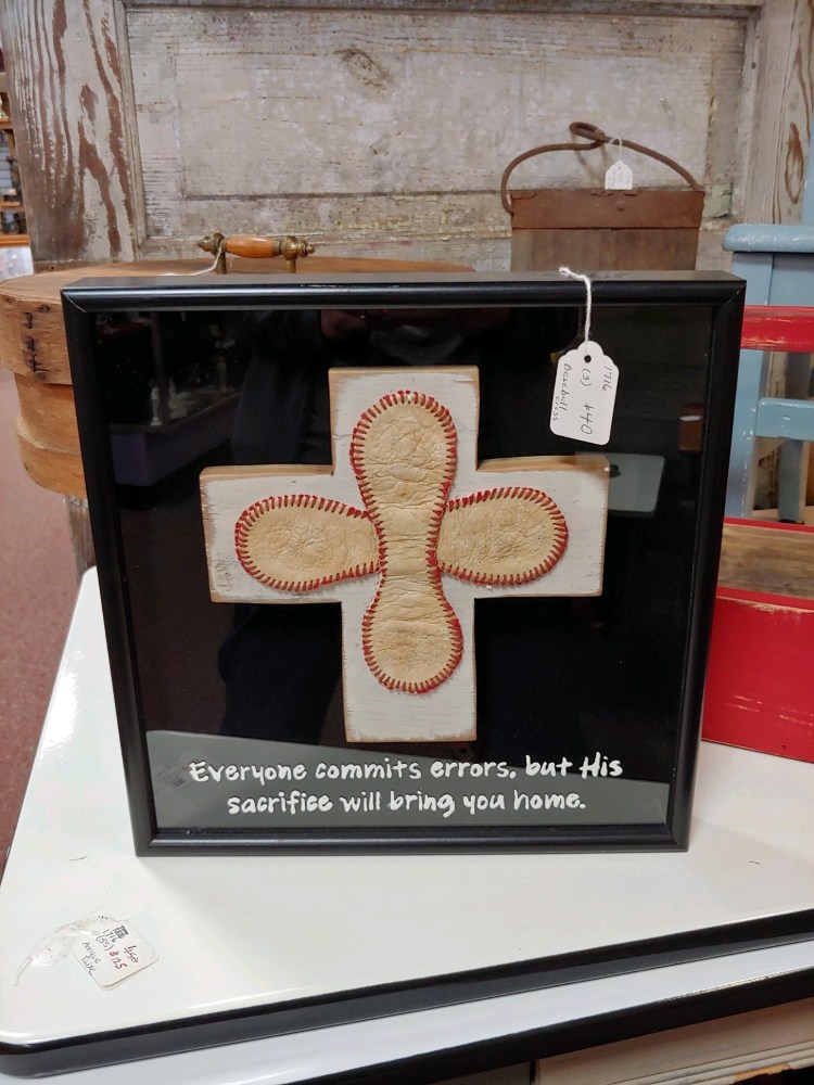 Many of us have children that are involved in sports. Sometimes we have to take a step back and remember that it is only a game. Shadow box contains the cross with a baseball or softball and then the inscription as shown in the picture. It is available with a softball or baseball