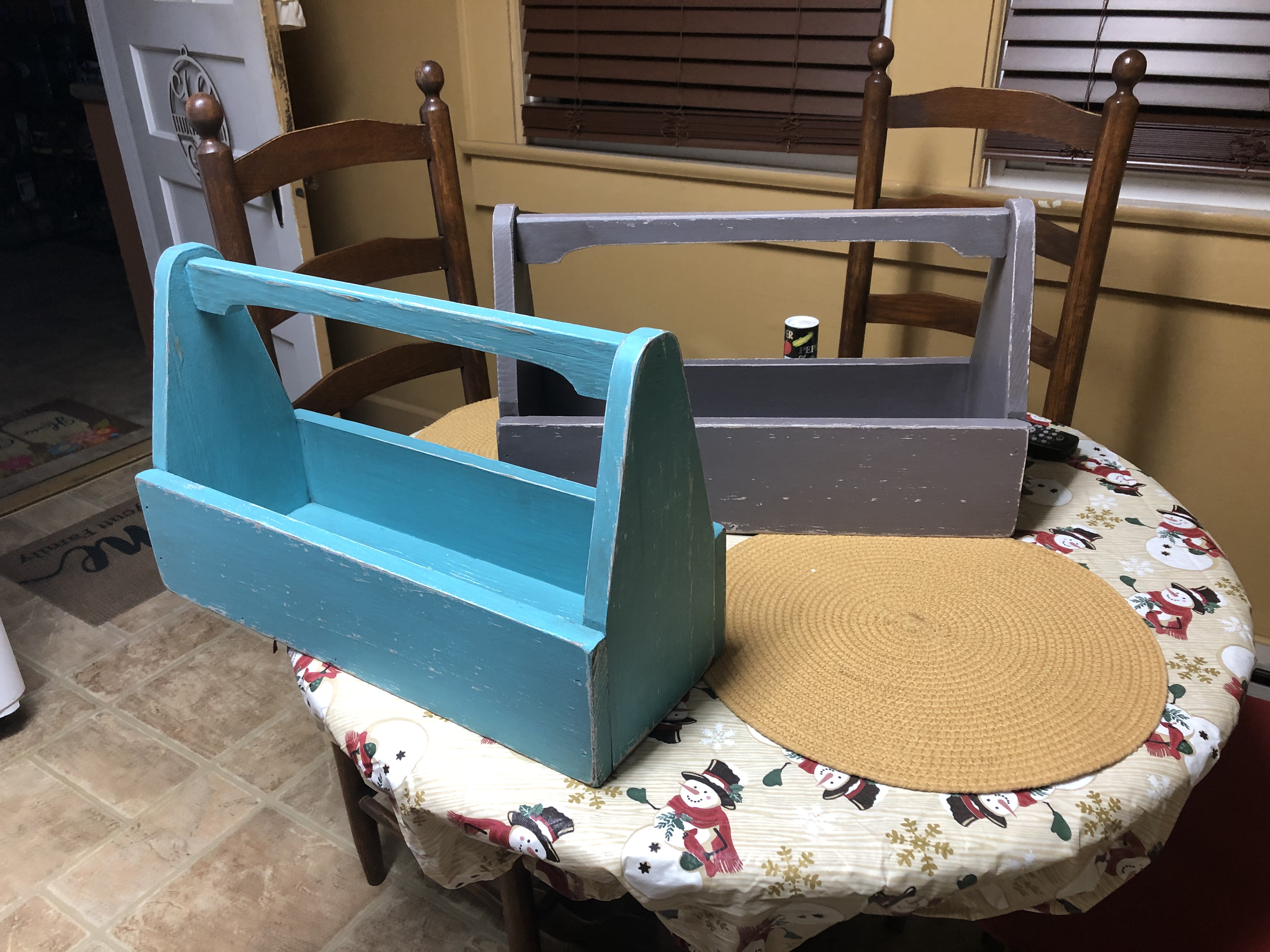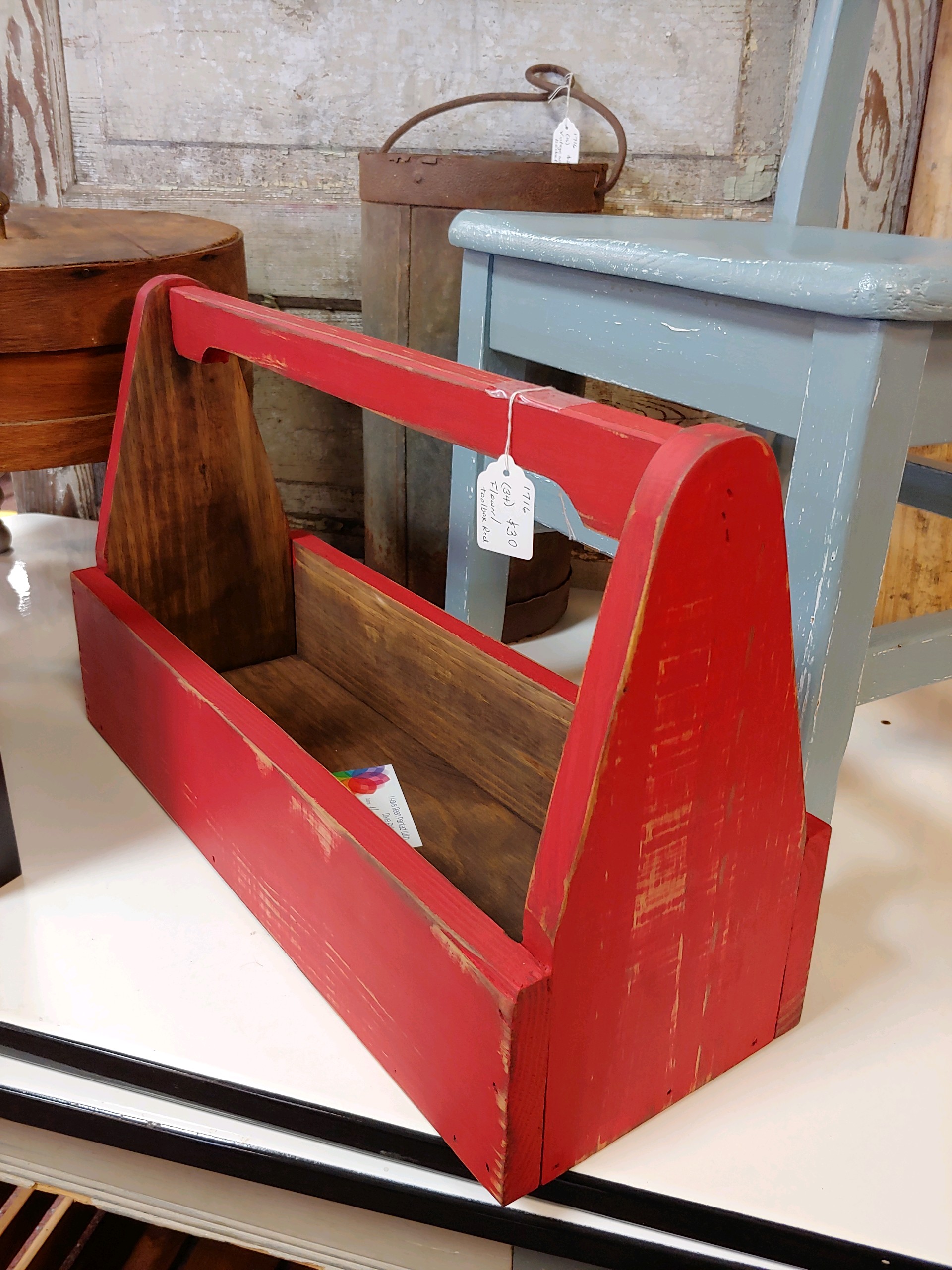 We have painted and distressed several of these reproduction tool boxes in a variety of colors. They make a great addition to any room in the house and can store all types of items. Perfect for a child’s room, bathroom, coffee table, etc. Can also be used as a planter for flowers.