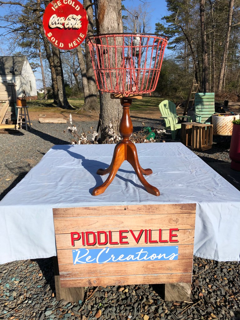 We have attached an old egg basket to the base of an old coffee table to create this unique storage container. Container could hold blankets, teddy bears, balls, or any assortment of items in a child’s room or a laundry room.